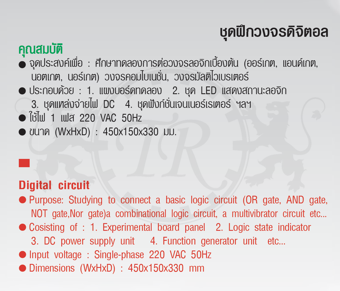 หน้าแรก » ชุดฝึก-ชุดทดลอง ระบบอิเล็กทรอนิกส์ (Electronic Training Systems) » ชุดฝึกวงจรดิจิตอล Model 0536-008